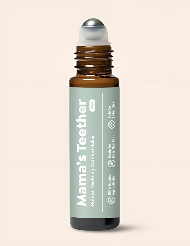 Our teething roller works through your baby’s skin, not their mouth. When applied along the jawline, under the chin, or behind the ears, our gentle formula absorbs into the skin and interacts with the nerves connected to the gums. This helps soothe discomfort and ease tension right at the source without the need for oral medication.